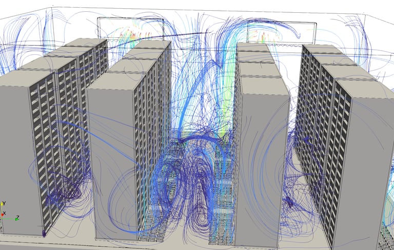 Data center modern memiliki kepadatan daya yang tinggi karena banyaknya server dan perangkat jaringan yang beroperasi secara terus-menerus. Panas yang dihasilkan dari rack server harus dikelola dengan baik agar temperatur operasi tetap berada dalam batas aman. Melalui jasa simulasi CFD data center, distribusi temperatur di sekitar rack server, jalur aliran udara dari sistem pendingin, serta interaksi antara udara panas dan udara dingin dapat dianalisis secara menyeluruh.